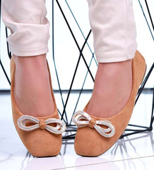 Wiosenne camelowe balerinki z błyszczącą kokardką /F3-2 15907A G182/