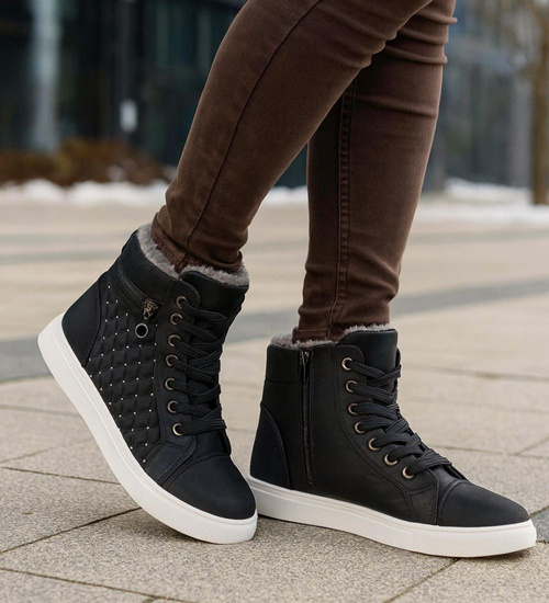 (ilość produktów: 6)Zimowe czarne trampki z futerkiem /G3-2 18612 T396/