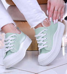 Miętowe damskie trampki na platformie /D7-2 14010 S396/
