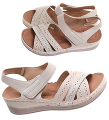 Beżowe sandały na niskim koturnie /D7-2 17938 W331/