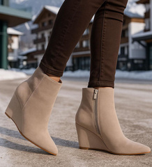 (ilość produktów: 5)Beżowe ocieplane botki na koturnie /D8-1 18616 T248/
