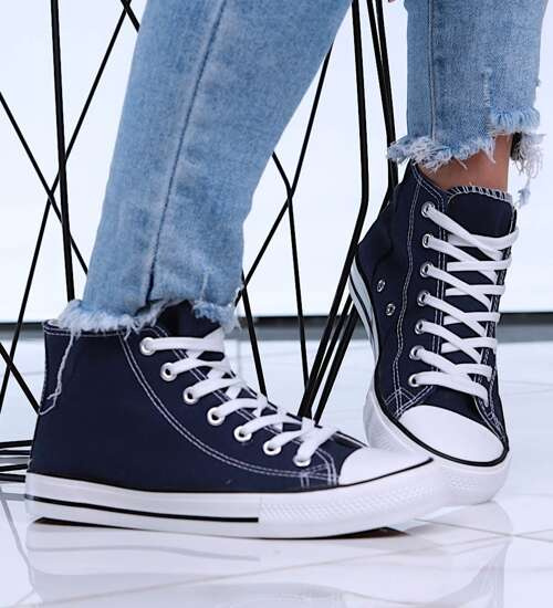 Materiałowe granatowe balerinki jak tenisówki /C4-1 14390 T046/