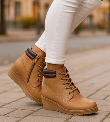 Różowe sznurowane botki na niskim koturnie /E9-2 16625 T7-38/