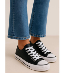 Sznurowane czarne trampki sneakersy na niskim koturnie /E5-1 15820 D430/
