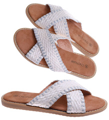 Białe klapki na płaskim obcasie /D9-3 17537 G186/