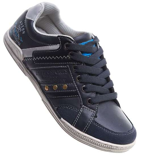 Granatowe sznurowane trampki męskie /D9-2 16665 T499/