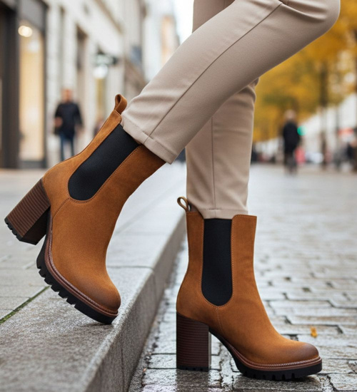 (ilość produktów: 420)Karmelowe zimowe botki na słupku /L3-2 18592 G288/
