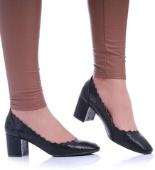 Wizytowe czarne sandały na klocku /B5-3 16340 G241/
