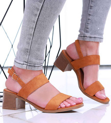 (ilość produktów: 420)Karmelowe sandały damskie na grubym obcasie /G11-3 16347 G340/