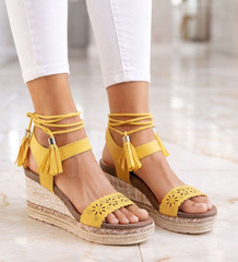 (ilość produktów: 420)Sandały na koturnie i platformie Żółte /D3-3 14050 S290/