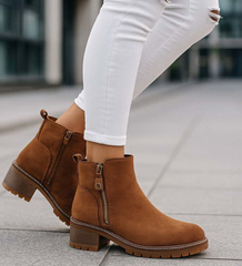 (ilość produktów: 420)Karmelowe botki damskie na grubym obcasie /F10-2 18245 W477/