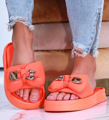 Pomarańczowe klapki z kokardą na platformie /F6-3 16159 T438/