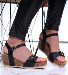 Czarne sandały damskie na koturnie i platformie /E2-2 16597 G286/