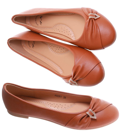 Brązowe klasyczne baleriny damskie z cyrkoniami /D1-2 17706 W182/
