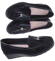 (ilość produktów: 2)Ażurowe czarne czółenka na niskim koturnie z frędzlami /E6-2 17719 W299/