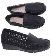Ażurowe czarne czółenka na niskim koturnie /A6-3 17718 W299/