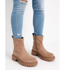Beżowe ocieplane botki na platformie /C5-1 18172 T432/