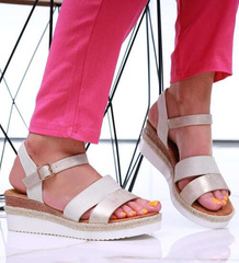 Beżowe sandały damskie na niskim koturnie i platformie /F10-2 16462 T623/