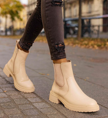 Beżowe botki damskie na płaskim obcasie wsuwane /L3-2 18507 W232/