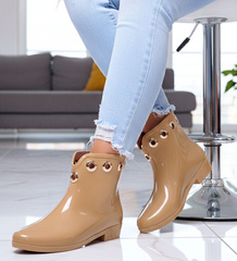 Beżowe kozaki damskie z suwakiem /D8-3 18134 T397/