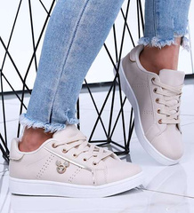 Sznurowane damskie beżowe buty sportowe /B2-3 12234 T394/