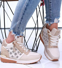 Sznurowane beżowe trampki sneakersy na koturnie i platformie /C2-3 15745 D432/