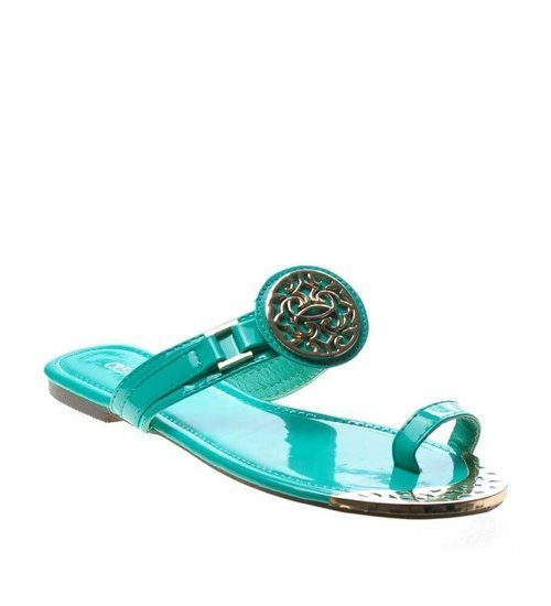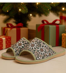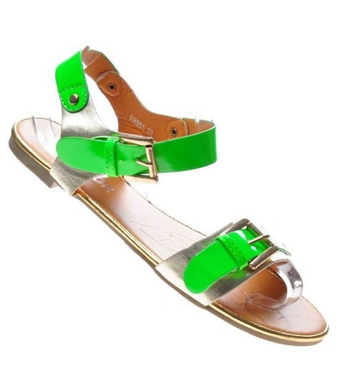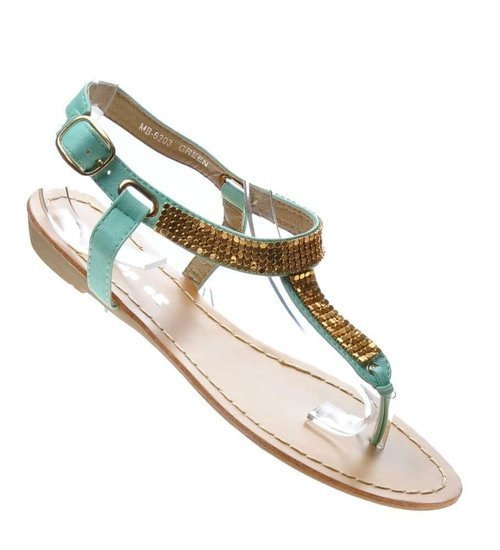 Zielono białe klapki na płaskim obcasie /H2 14349 T005/