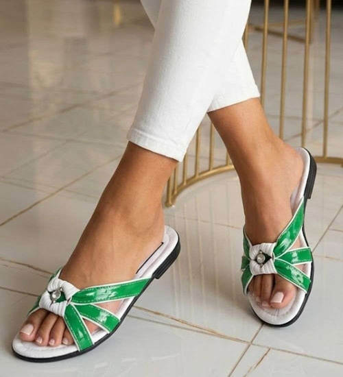 (ilość produktów: 71)Klapki damskie na płaskim obcasie biało zielone /H2 14343 T005/