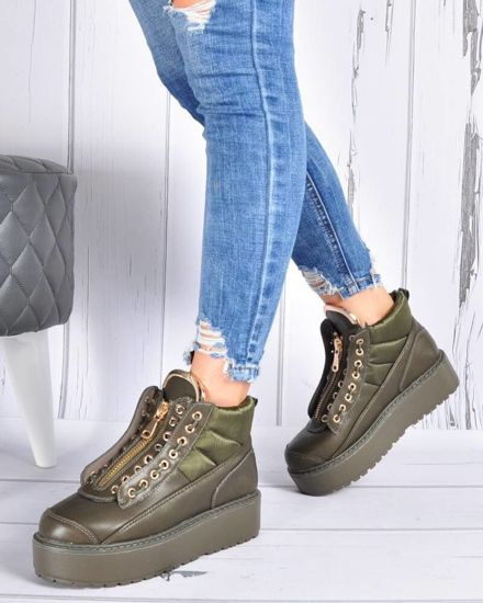 Welurowe zielone botki damskie na platformie /i5-3 H2 18392 G284/