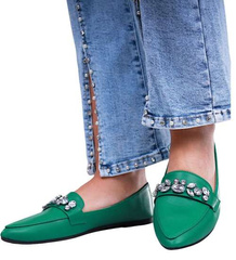 Zielone baleriny lordsy z kamieniami /D6-1 14112 T2/