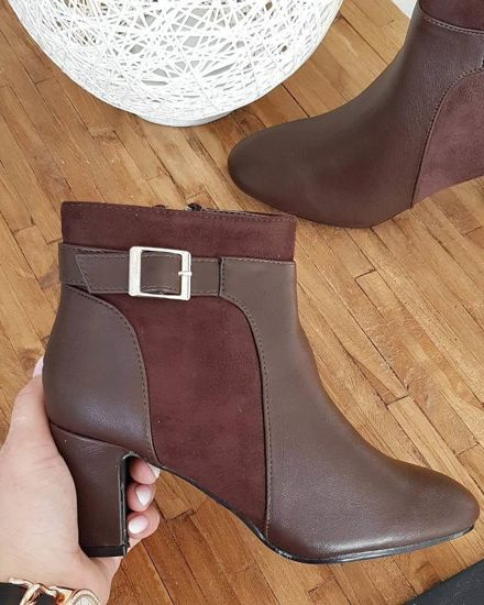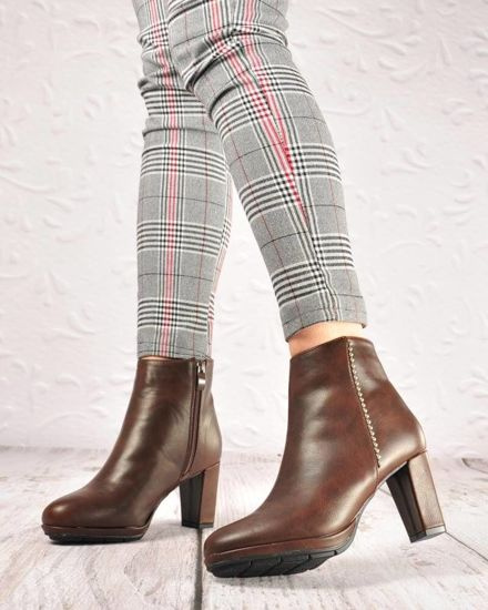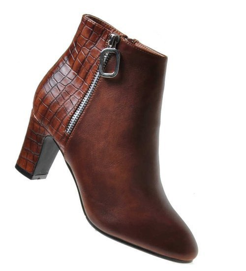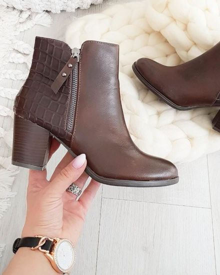 Krótkie czekoladowe kozaki boho na obcasie /B7-1 18580 G688/