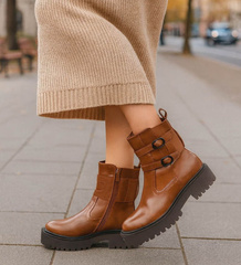 Zimowe botki saszki z ociepleniem Brązowe /G9-3 18540 G288/