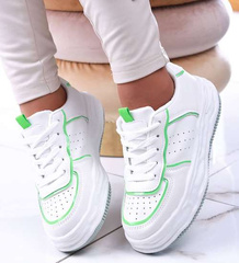 Białe damskie buty sportowe na niskiej platformie /B6-3 13665 S297/