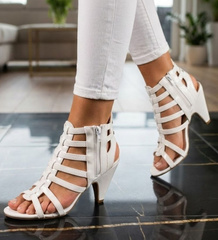 Białe sandały damskie na obcasie /F6-3 11737 T290/