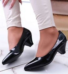 Lakierowane czarne czółenka na niskim obcasie /A3-3 13669 T242/