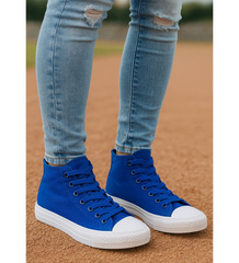 (ilość produktów: 88)Klasyczne niebiesko białe trampki damskie z wysoką cholewką /G1-1 16734 G9-84/