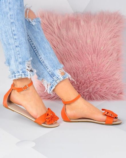 Pomarańczowe klapki japonki z kokardą /D7-2 16262 T085/