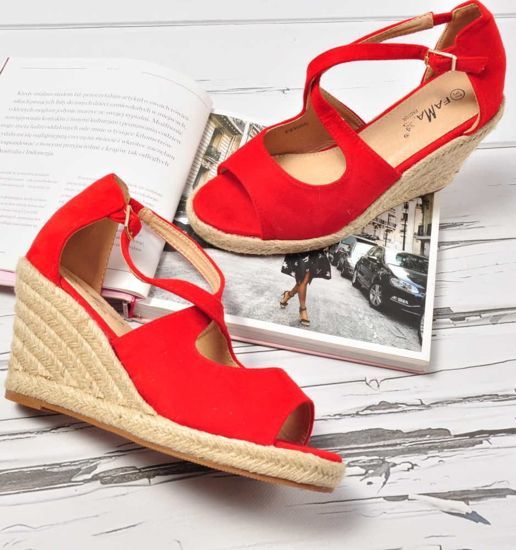 Czerwone sandały na niskim koturnie /C7-3 17924 W235/