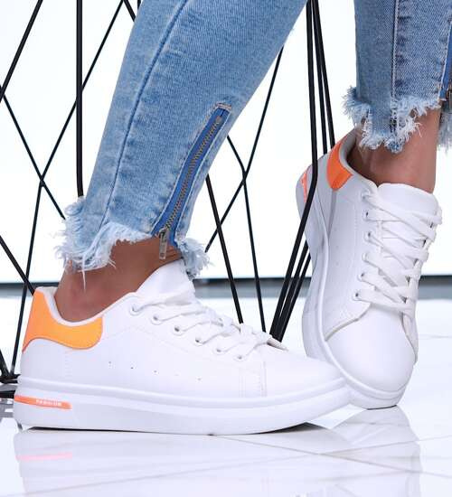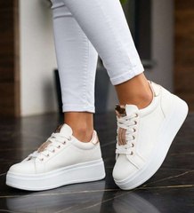 Białe damskie buty sportowe na niskiej platformie /B6-3 13665 S297/